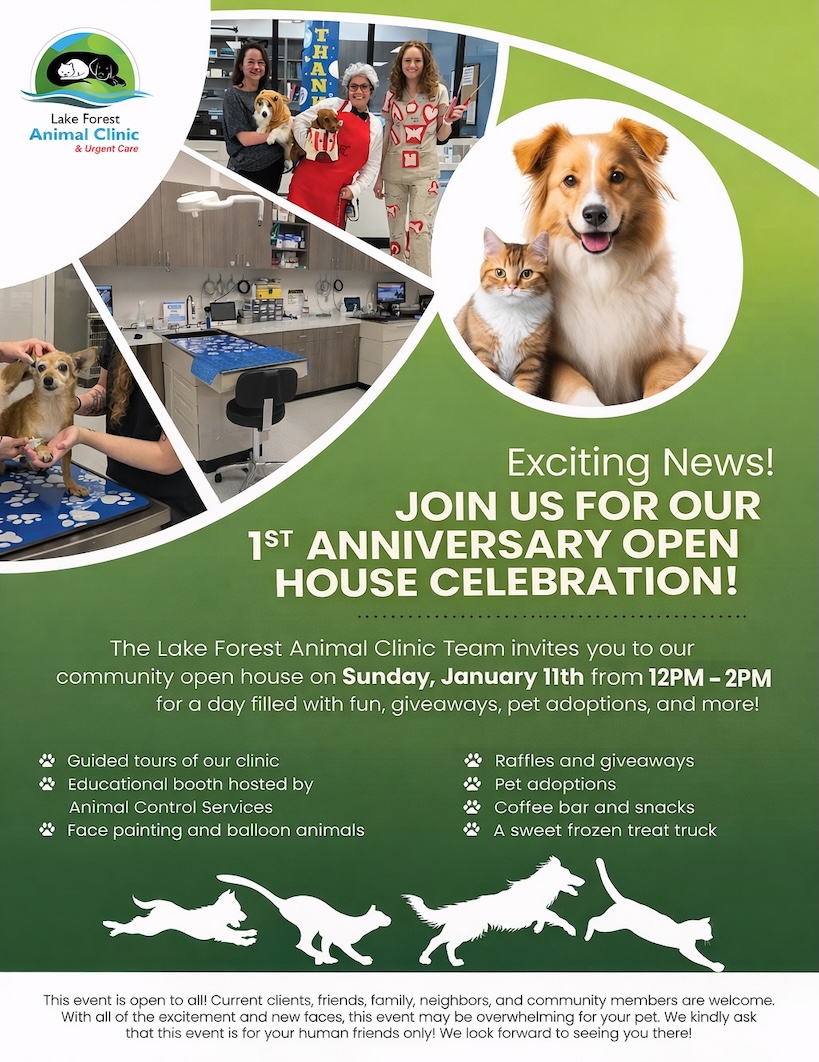 Lake Forest Animal Clinic Open House Adoption Event January 11, 2026